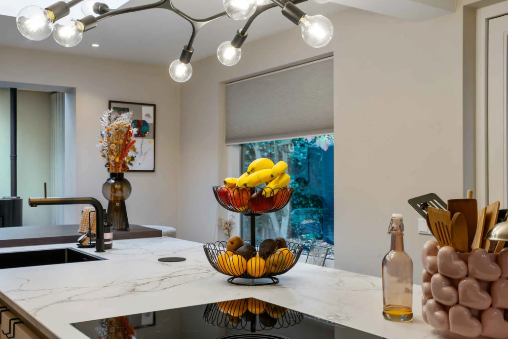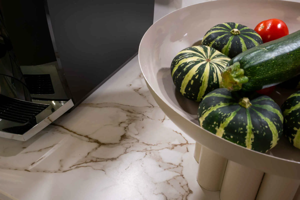 Ook het werkblad voldoet aan alle wensen. “Het is een Dekton blad: krasvast, hittebestendig en makkelijk schoon te houden. Dat bevalt heel goed.”